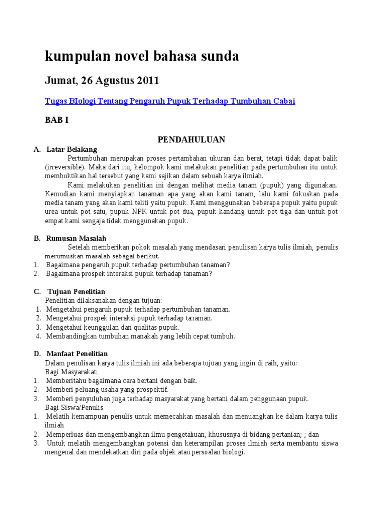 Contoh Sinopsis Novel Bahasa Sunda Kumpulan Contoh Makalah Doc Lengkap
